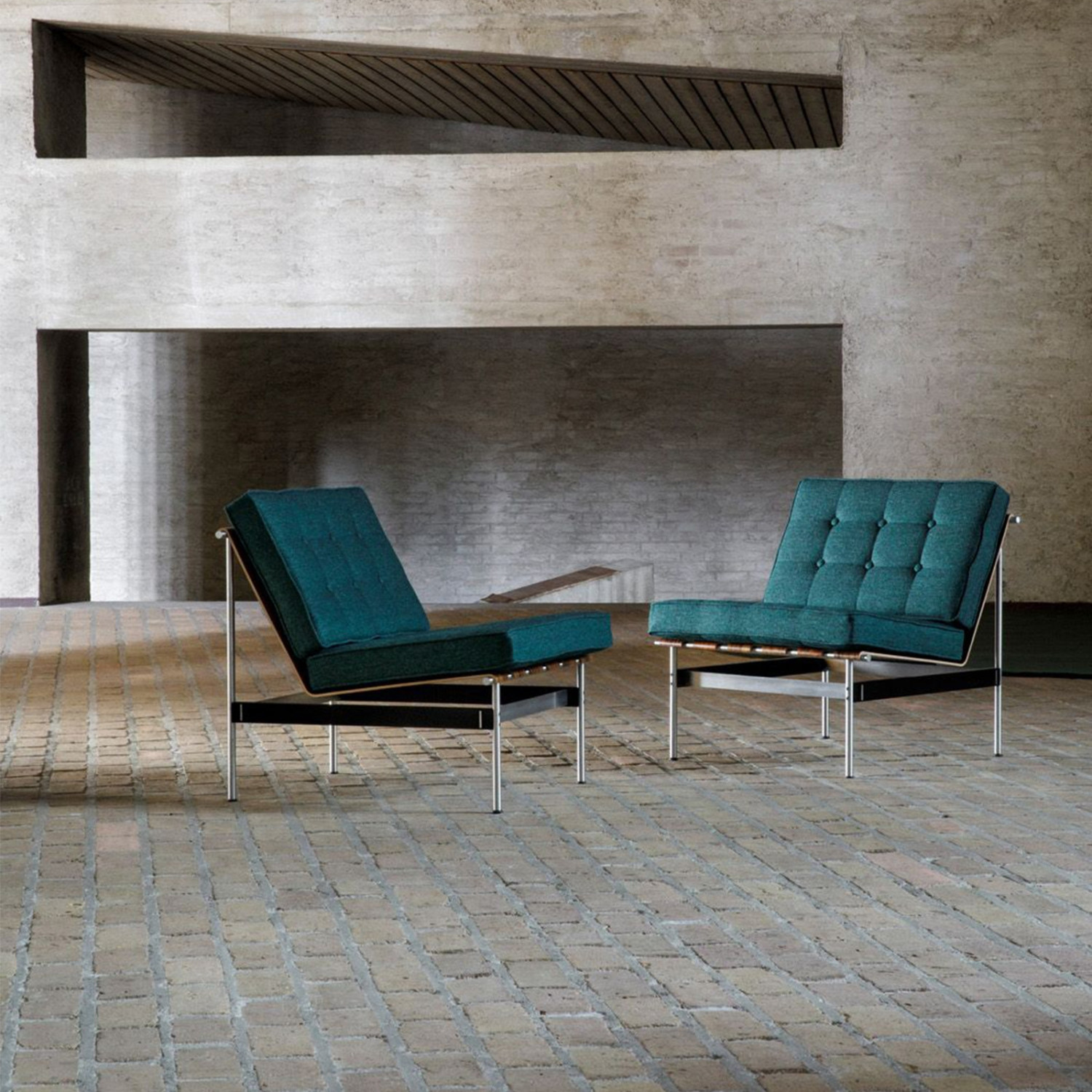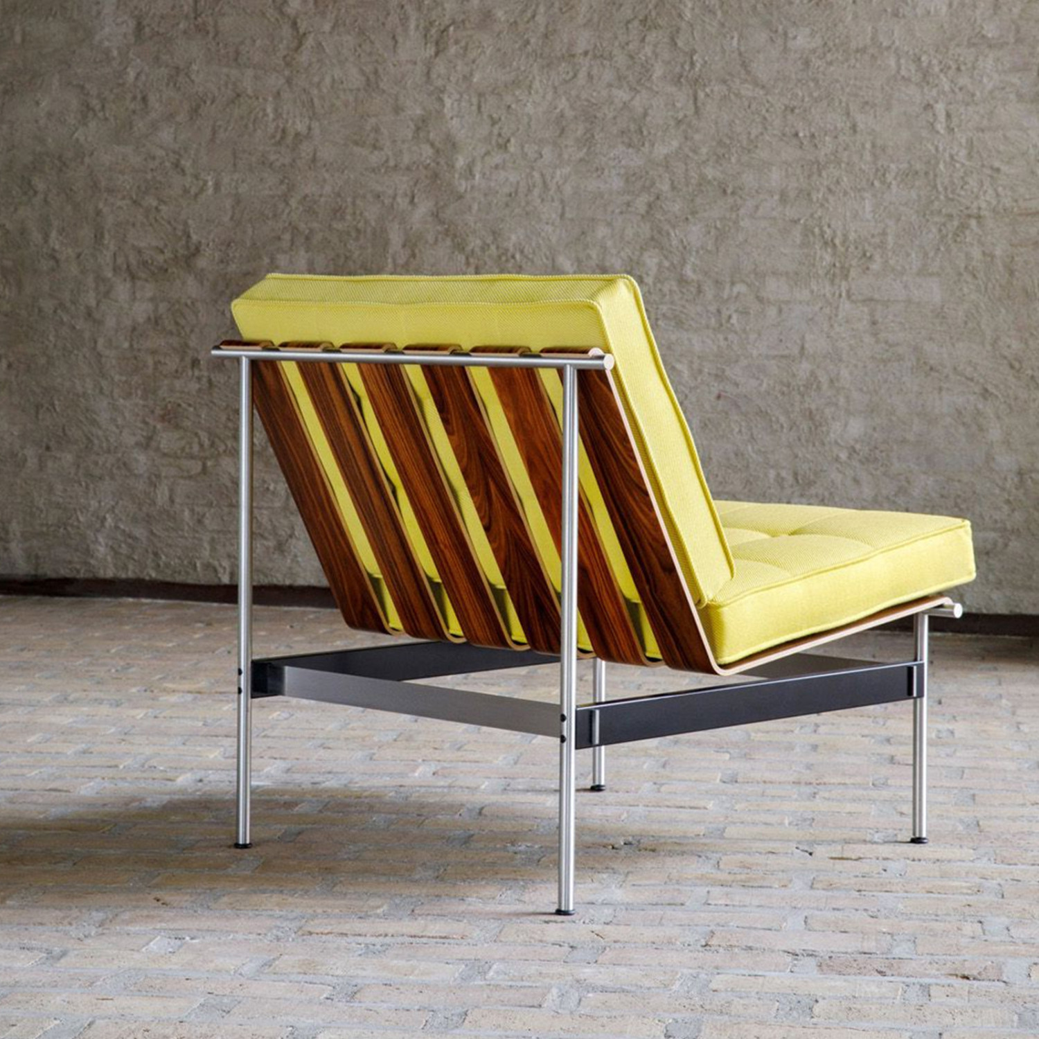 The F416 series is a compact and lightweight lounge chair that is remarkable from any angle. Originally brought onto the market by Artifort in 1960, renowned designer Kho Liang Ie made a clear statement that was far ahead of its time. Artifort is proud to once again offer this modern masterpiece with all of its possibilities. The minimalist frame of the F416 armchair and sofa consists of a careful balance between brushed stainless steel and black coated metal elements, finished with slats made from Santos rosewood. The padded seat cushion of the 416 armchair provides maximum comfort.