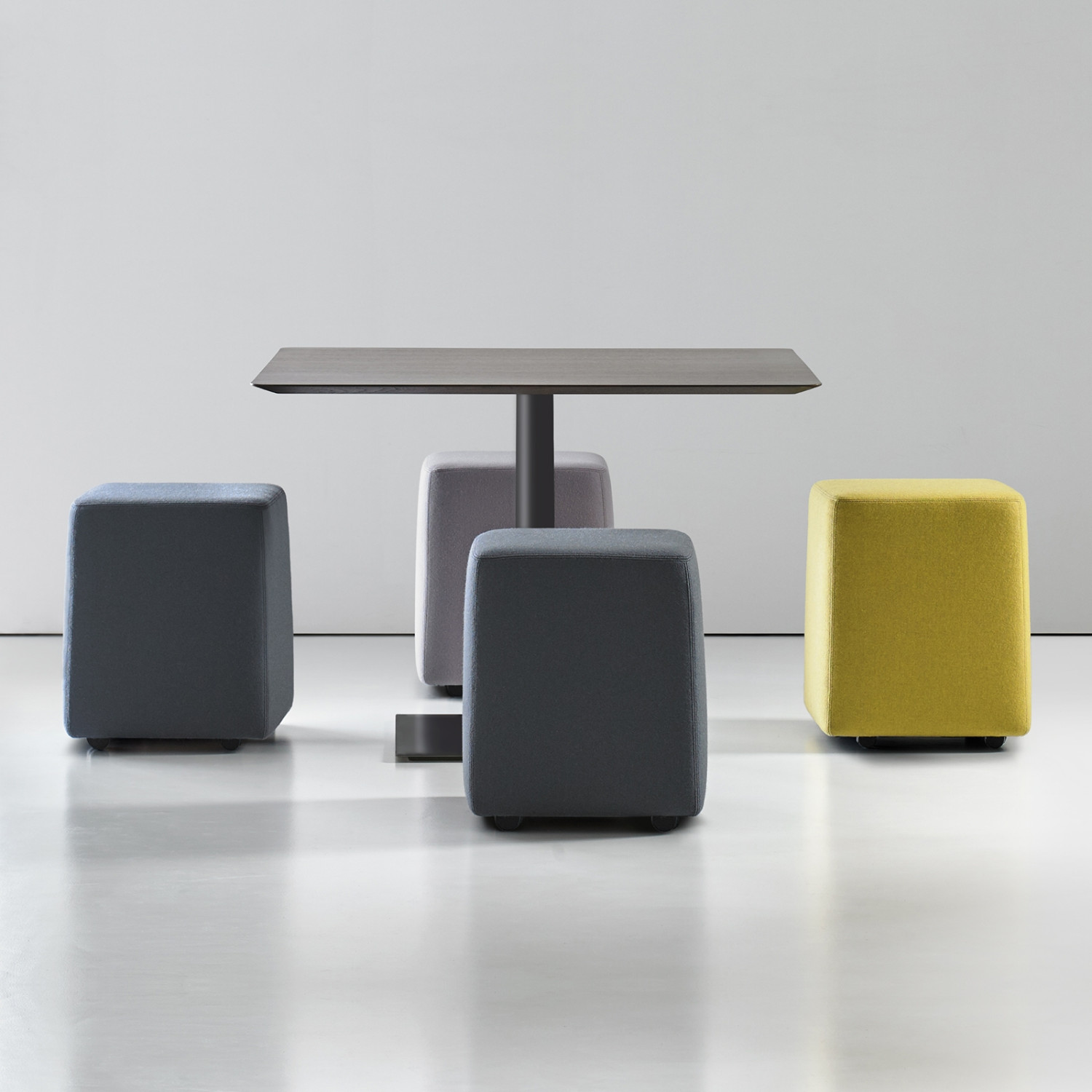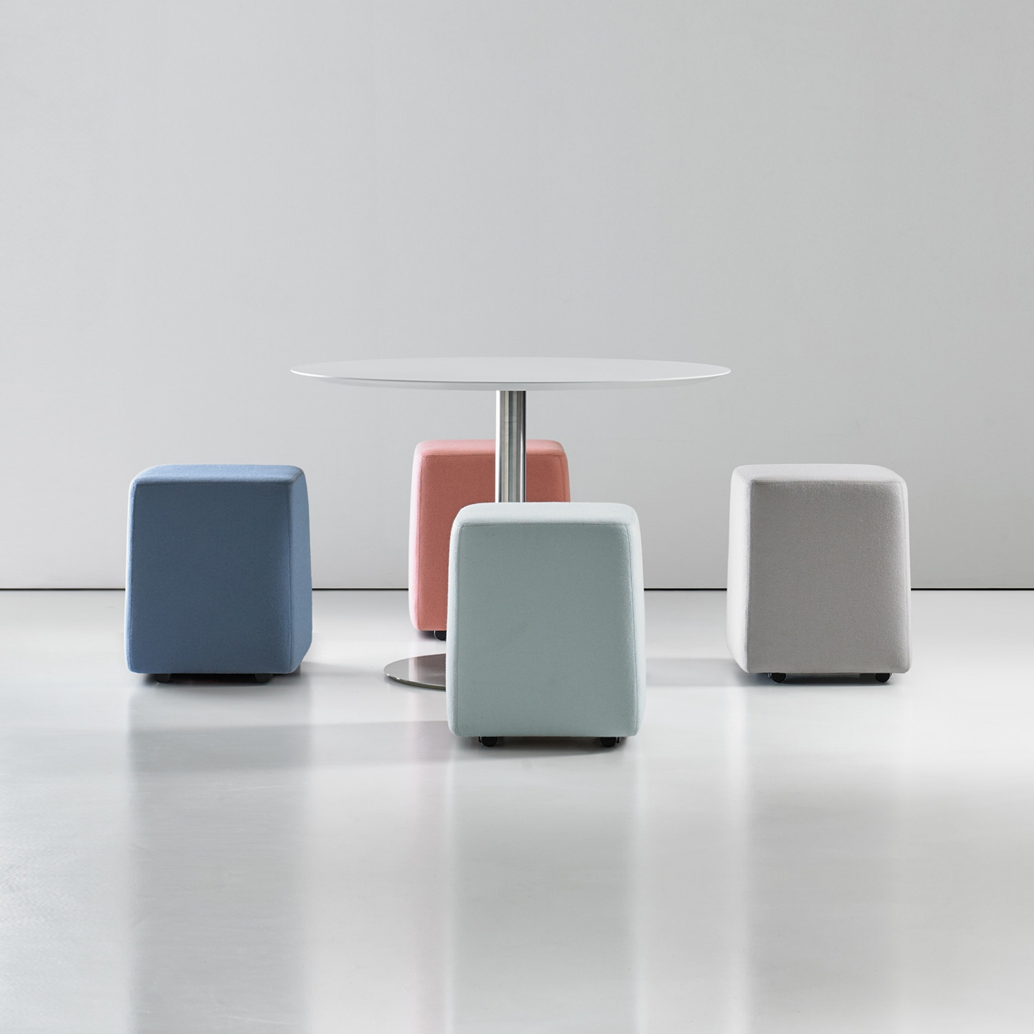 Fully upholstered stay ottoman. It can come with wheels making it extremely agile and mobile, giving the user great freedom of movement.