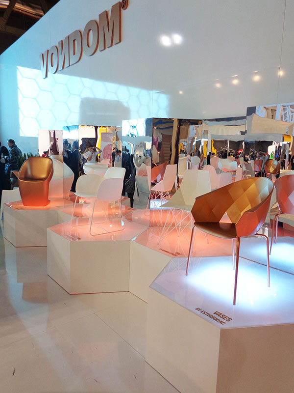 At first count, Vondom exhibited over 15 new collections from established partnerships with Karim Rashid, Ramon Esteve, Fabio Novembre, Ora Ito, A-Cero and new relationships with well known designers such as Jorge Pensi, Estudi{h}ac, Gabrielle + Oscar Buratti, all bearing the Vondom trademark of roto-moulded plastic.