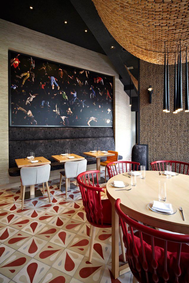 Tea Panels from Sancal and Lottus Stools from Enea at Jaleo, Washington D.C. Photo Courtesy Interiors from Spain[/caption]