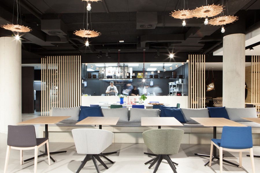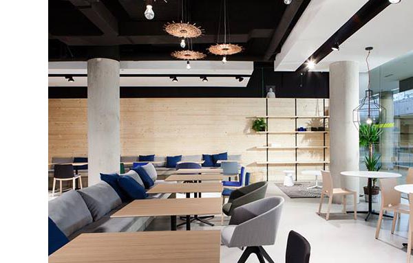 The Reverse and Quattro Tables are combined with the Flex, Brandy, Unos and Nub Chairs from Andreu World.
