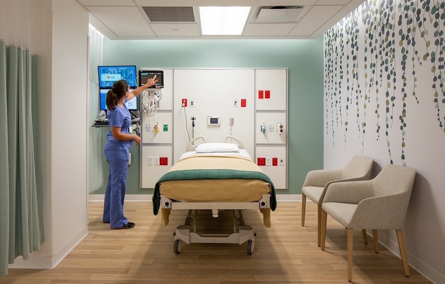 The new private patient rooms provide generous space for visiting family members. The Alya chairs provide stylish, ergonomic seating so that family members can comfortably support children while they are healing.