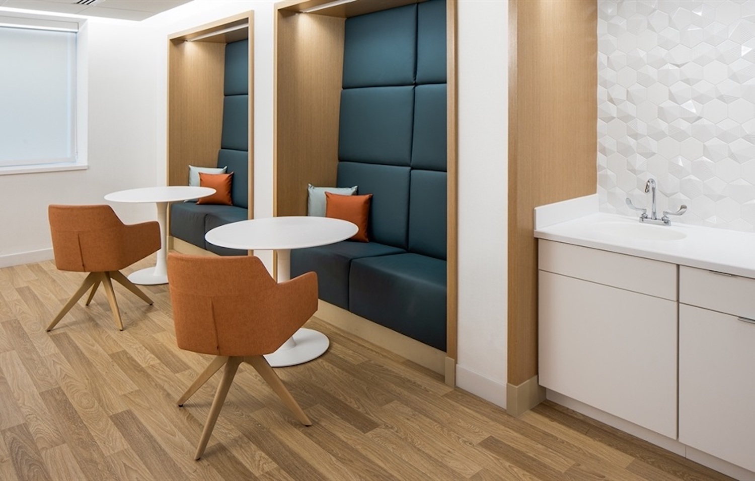 The new private patient rooms provide generous space for visiting family members. The Alya chairs provide stylish, ergonomic seating so that family members can comfortably support children while they are healing.