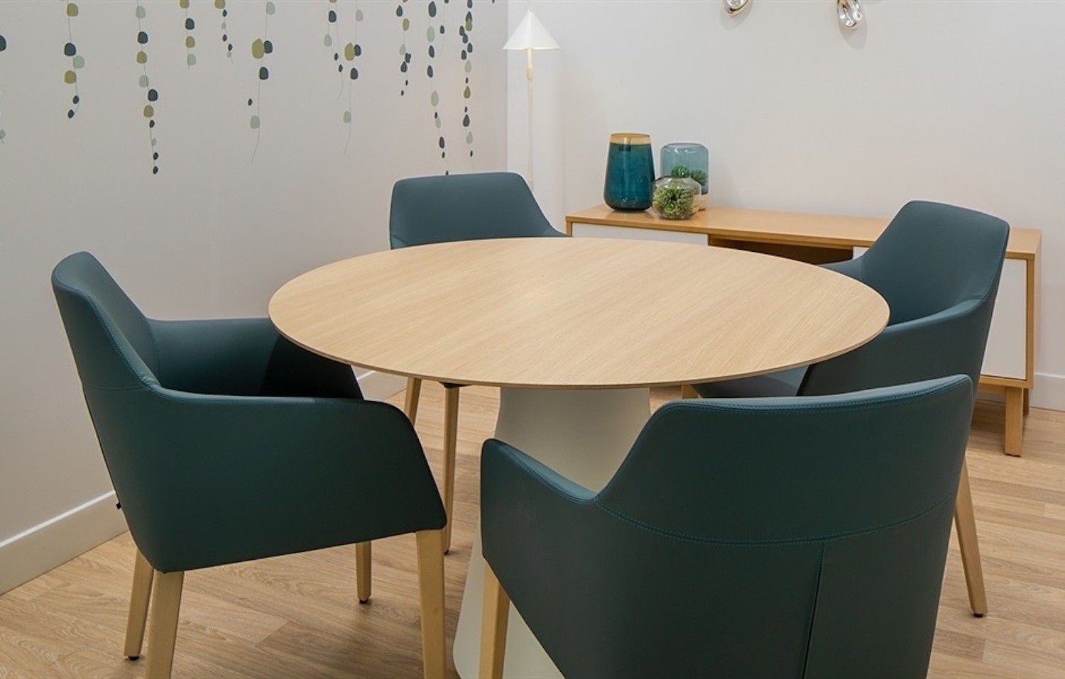 The chairs are paired with Andreu World’s Reverse Dining tables with round tabletops. Their contemporary and streamlined design reduces trip hazards and potential knocks and their surfaces are easy to keep clean.