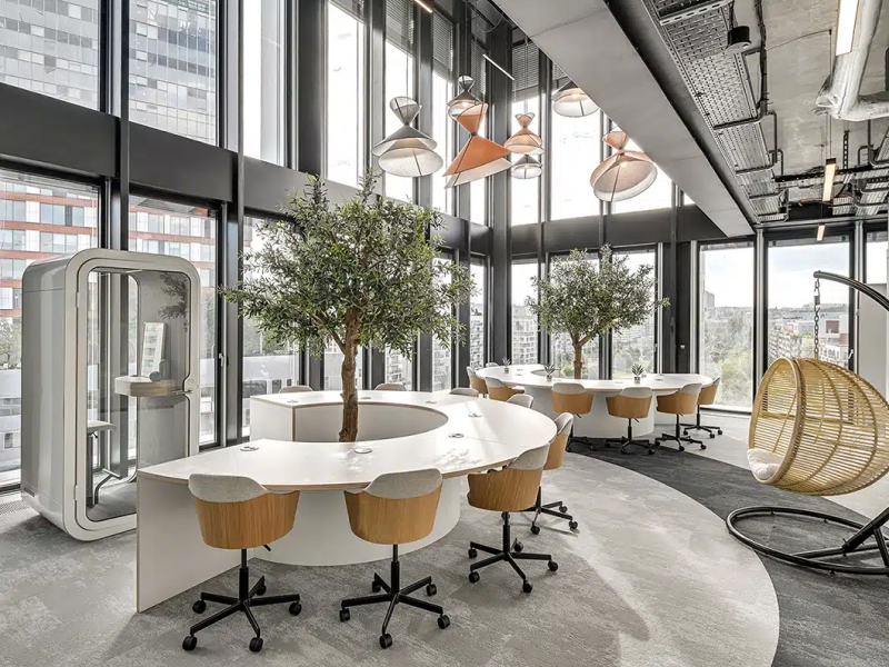 Think beyond the traditional desk layout. There is a growing shift from open floor plans entirely designed for focused work towards spaces that cater to a broader range of activities. Imagine designated zones for focused work, brainstorming sessions, casual meetings, and even relaxation. This empowers employees to choose the environment that best suits their task, boosting productivity and collaboration.
