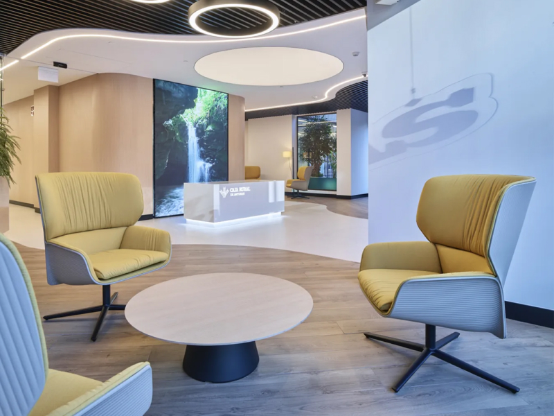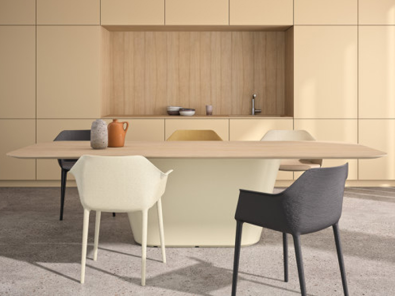 (Andreu World only uses 100% Pure ECO® thermopolymers in the manufacture of its products, which guarantees circularity from their origin to the end of their useful life. This plastic, which is 100% recycled and 100% recyclable, has been used in their collections since 2024)
