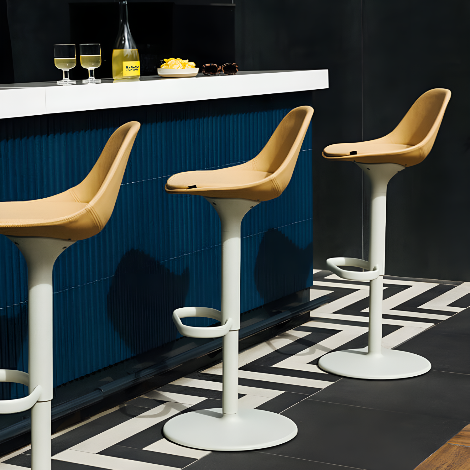 The Mate Stool with Lift Base, available with a high or low backrest, has a swivel structure in aluminium and steel lacquered in any of our colours, with a wide range of finishes: polypropylene shell with a seat pad in the same material or upholstered, or fully upholstered. It is an adjustable stool, so it is suitable for homes, hospitality and workspaces.