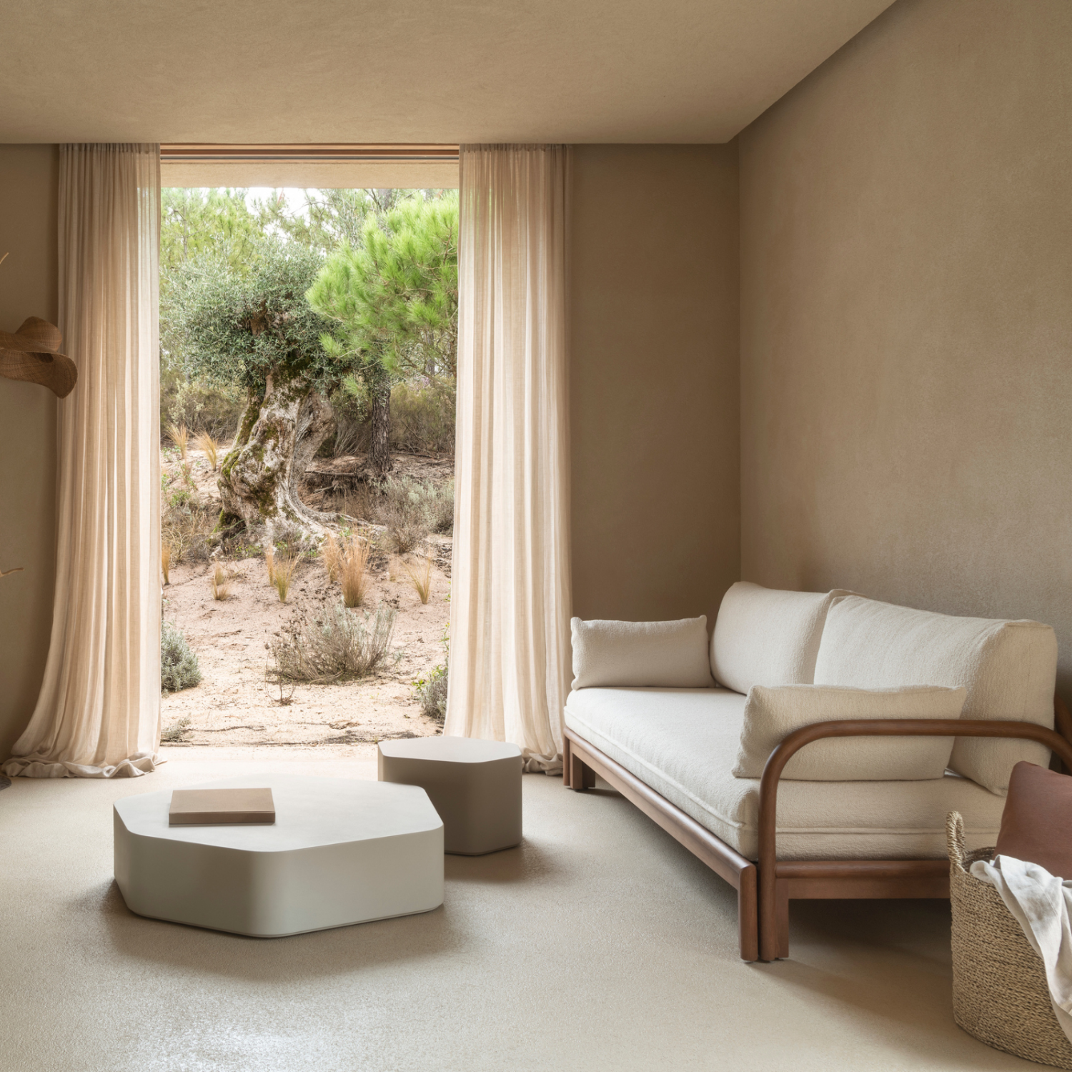 505 Sofa is a classic piece designed and patented by Miguel Laso Llopis for Expormim. Its dual functionality, achieved through an innovative structure featuring two sliding racks to transform the sofa into a double bed.
