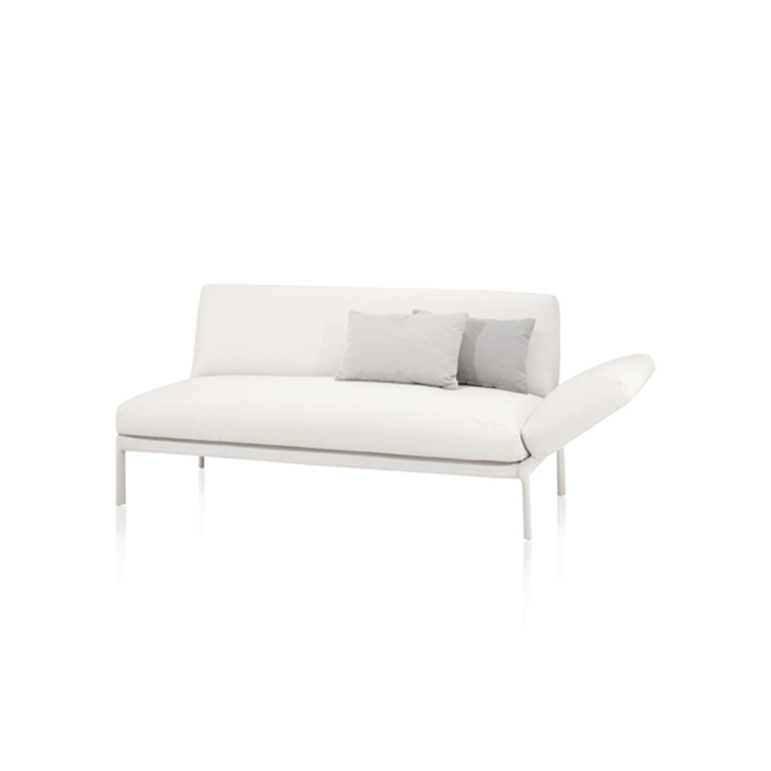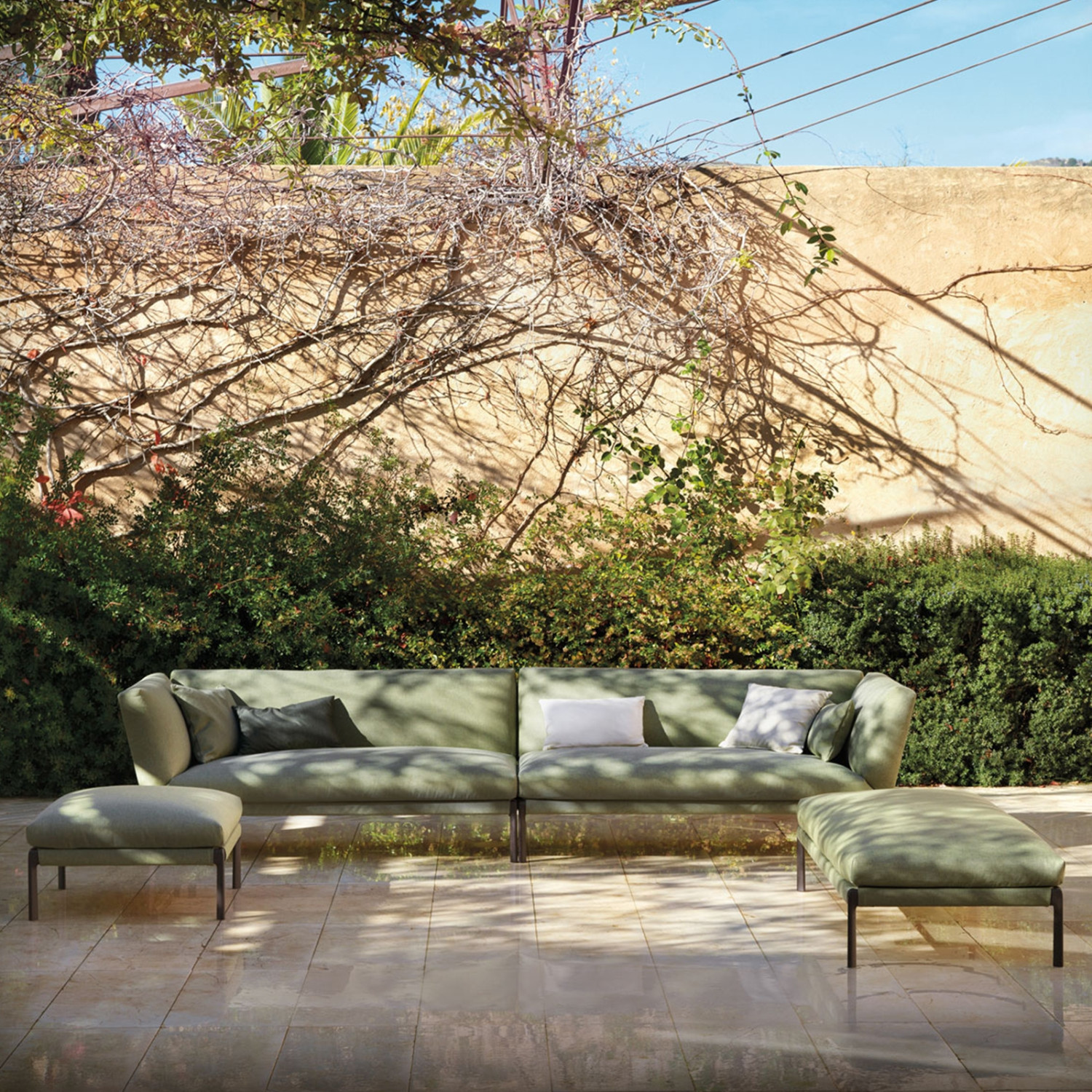 Livit is a welcoming piece with soft cushions buoyed up by a slender aluminum frame, which balances comfort and lightness with the aim of providing a blithesome relax. It is light and comfortable, but it does not give up in the least to that "timeless Mediterranean elegance", as its own designers Lievore Altherr Molina define it. A couch especially designed so everyone enjoys "at ease".