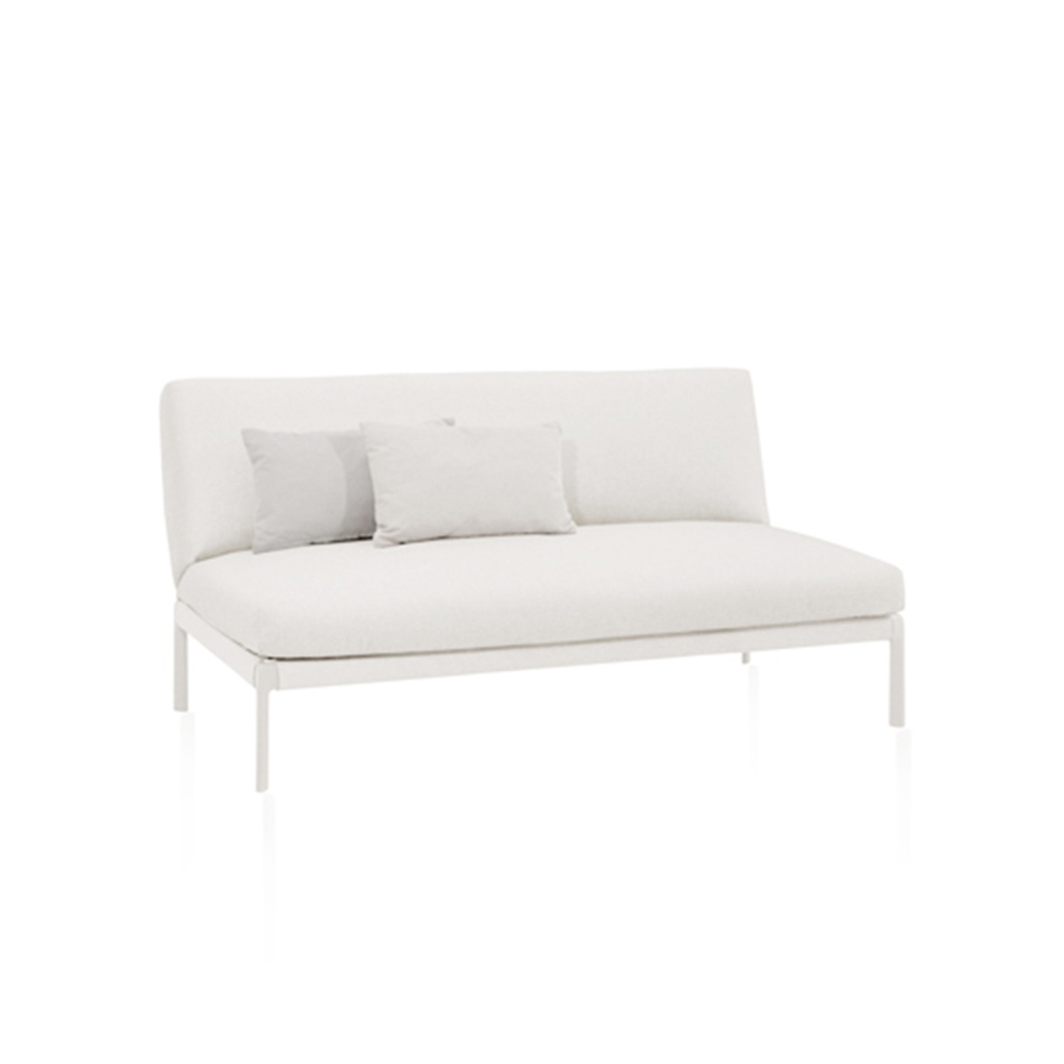 Module with structure made of high resistance aluminum profile and legs of injected aluminum, finished with polyester powder. Possibility of customization through a wide variety of technical fabrics completely suitable for outdoor use. Removable upholstery cover.