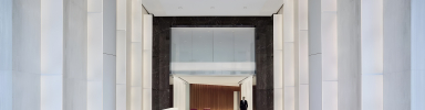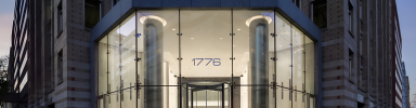 Undergoing a transformative renovation masterfully crafted by Leo A Daly, the1776 Eye Street buillding structure now boasts an inviting ambiance with an expanded lobby. Daly's design revitalized the building entrance and introduced an updated transparency and lightness, making the lobby entrance visible to the exterior.