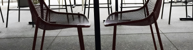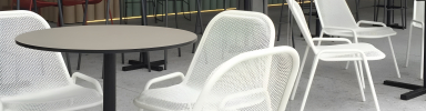 The pioneering Italian furniture manufacturer known for its mastery in working with and protecting metal, brings a touch of sophistication to the urban landscape. The space features the Darwin bar stool in black and the Round chairs in antique iron, both exemplifying Emu's commitment to blending classic themes with contemporary design.