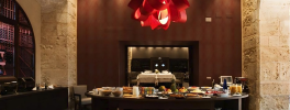 illuminated by the radiant glow, the setting is enrinched with the Agatha & Totem suspension lamp, masterpiece designed by Luis Elsava Studio & Burkhard Dammer for LZF, casting a warm and golden hue that complements the classical surroundings. Experience a harmonious blend of history and contemporary design, as the Agatha and Totem lamp adds a touch of modern elegance to the rich cultural tapestry of this captivating Spanish landmark.
