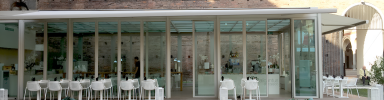 Calicantus Sforzesco is located in an exceptional location, truly a hidden gem within the city. Settled directly opposite the Castello, it provides a convenient spot for visitors to enjoy a meal, snack, or coffee break after exploring the castle. The cafe's glass structure accommodates both indoor and outdoor seating areas, adorned with the elegant Round chair and table designed by Christophe Pillet for EMU.