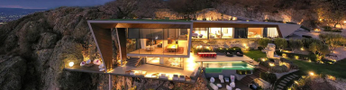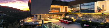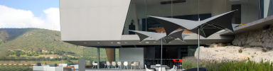 The pool area, designed for leisure and relaxation, showcases the Ulm daybed from Vondom. This outdoor furniture piece provides a cozy retreat for the homeowners to unwind and enjoy the surroundings. For yet another outdoor dining area, the Voxel collection with its distinctive armchairs, characterized by robust geometry and faceted shapes, add a touch of sophistication to the al fresco setting. The thoughtful selection of outdoor furniture enhances the overall ambiance of the C-34 house, creating a harmonious blend of architecture and design amid the rugged beauty of the rocky terrain.
