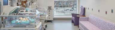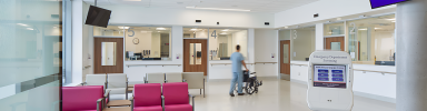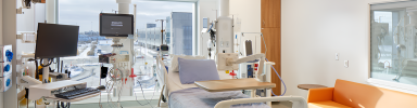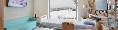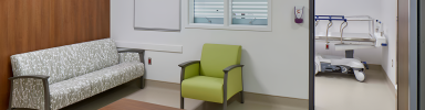 All patient rooms in the hospital are private, equipped with large windows to allow natural light, and feature comfortable recliners and sleepers for loved ones who wish to stay overnight. These thoughtful design elements work together to create a comforting experience, ensuring that patients and visitors feel at ease from the moment they arrive until they leave the hospital.