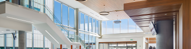 Cortellucci Vaughan Hospital is a state-of-the-art facility designed to provide safer, more effective, and comfortable care. As Canada's first "smart" hospital, it merges advanced technology with thoughtful design to improve patient outcomes. To improve both patient and staff experiences, the hospital features furnishings from Global Furniture’s Dreme and Primacare collections, aimed to create a calming atmosphere throughout the building. The use of warm orange and cool blue textiles on the furniture helps create a soothing environment.