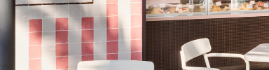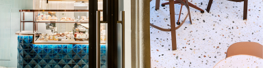 The café’s interior exudes the charm of Barcelona, featuring classic white-tiled mosaic floors, warm wood-paneled walls, and custom-designed lighting. Its ambiance is further enhanced by carefully chosen furnishings, including earth-toned Thor stools from EMU, creating a cozy yet stylish space. This blend of traditional design elements and modern touches makes Farggi Café a destination for delicious treats and also a memorable experience that reflects the essence of Barcelona’s unique culture and design heritage.
