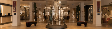 This fusion creates a distinctive atmosphere where each space offers a unique experience by combining traditional aspects with modern and contemporary features, such as the Sumo from Sancal, which serves as a central focal point in the lobby. The spaces are designed to embody the Hard Rock Hotel’s signature style, showcasing iconic pieces of international music history while prioritizing the comfort and satisfaction of its guests. By integrating memorabilia into the design, the hotel maintains its rock-inspired identity, offering an immersive experience without sacrificing luxury or relaxation.