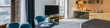 Hotel Gault, an exquisite hidden gem nestled in the heart of Old Montrea, a contemporary elegance, where refined service and modern decor converge to create an unforgettable stay. From communal spaces to intimate bedrooms, the hotel is furnished with carefully curated artistic pieces from Artifort, showcasing iconic designs such as the Little Tulip, Mushroom, and Orange Slice.