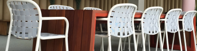The world renowned restaurant, Noma, has recently opened its doors in Barangaroo Sydney. The restaurant's outdoor area features Emu's Yard chairs with a matt white frame and pastel blue elastic woven bands. The Yard collection, designed by Stefan Diez, seamlessly marries innovation and aesthetics. The unique combination of woven elastic straps and an aluminum frame not only showcases an eclectic style but also ensures unparalleled comfort, making it the perfect choice for alfresco dining at Noma's enchanting outdoor space.