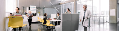 The design of this progressive facility revolves around a balance between high-technology equipment and sensitivity to the patient’s well-being and progress. Furniture from Global Furniture collections, including GC Sidero, Primacare, and River, provides comfortable and functional spaces for visitors, staff, and patients alike. Large windows and a spacious central courtyard allow natural light to reach multiple floors, extending even down to the second basement, fostering a visually open environment that promotes patient orientation and well-being.