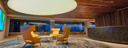 The bar is adorned with the stylish and comfortable Enea Lottus Stool, a masterpiece crafted for comfort with just the right amount of flexibility. The Enea Lottus Stool seamlessly integrates into any space, providing a clean and simple aesthetic. Its versatility makes it a perfect choice for creating a comfortable and inviting atmosphere. Adding a pop of vibrancy to the bar is the Lottus Stool in a stunning shade of yellow, enhancing the overall ambiance and making the space even more lively.