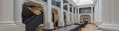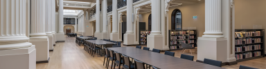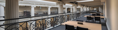 Amidst the library's timeless ambiance, one can discover the sophisticated touch of modernity in the form of Duos chairs from Andreu World, strategically placed in various spots of the space. This distinctive piece of furniture harmoniously blends ornate and precise details with an intricate construction technique, resulting in a robust collection that boasts durability, lightweight design, and aesthetic appeal. As visitors explore the library's hallowed halls, the Duos chairs in sleek black serve as both functional seating and artistic focal points, enhancing the overall experience.