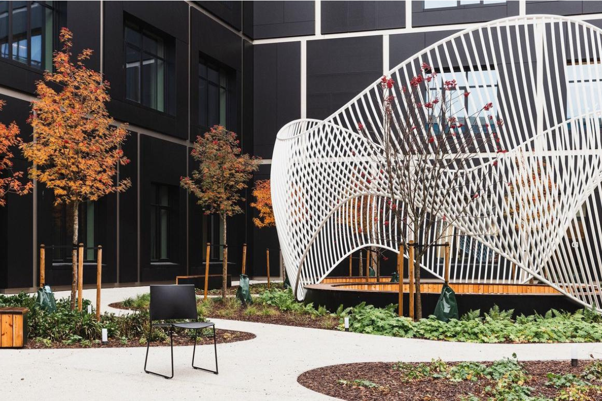 Integral to the school's interior design are the X50 chairs by Aichi, which are thoughtfully incorporated throughout the building. The chair is celebrated for its sleek, minimalist design, which complements the school's modern architectural style. Despite their simple appearance, these chairs are engineered with a focus on elasticity and comfort. The flexible seat and back are designed to respond to the user's body pressure, providing a comfortable seating experience even during extended use.