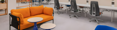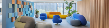 Drawing inspiration from the hues of the logo – blue, orange, and green – the design team curated a chromatic palette for the office refurbishment, delimiting spaces, fostering atmospheres, and selecting finishes and upholstery to ensure coherence throughout the project. The inclusion of Sancal furniture such as the Loop, Magnum, and Pion perfectly complements the distinctive and inviting workspace.