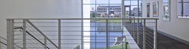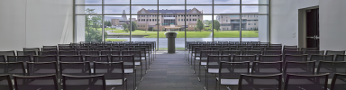 The conference center at University of Indiana is a versatile venue designed for conferences, meetings, and community events. Located along the wooded edge of Reflection Lake, Griffin Center offers stunning views of the university’s campus through its expansive floor-to-ceiling windows.