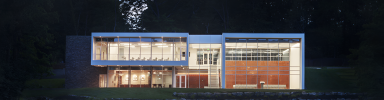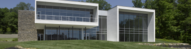 The elegant, two-level structure combines glass, stone, and highly insulated concrete to blur the distinction between indoor and outdoor spaces, subtly shifting the viewer's focus from the building to the campus. The color white highlighted the contrast between the architecture and nature, while also allowing the building to serve as a canvas for contemporary art.