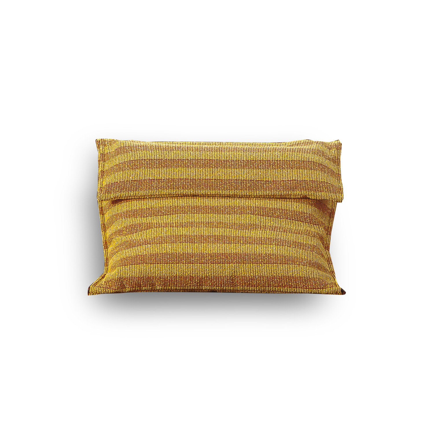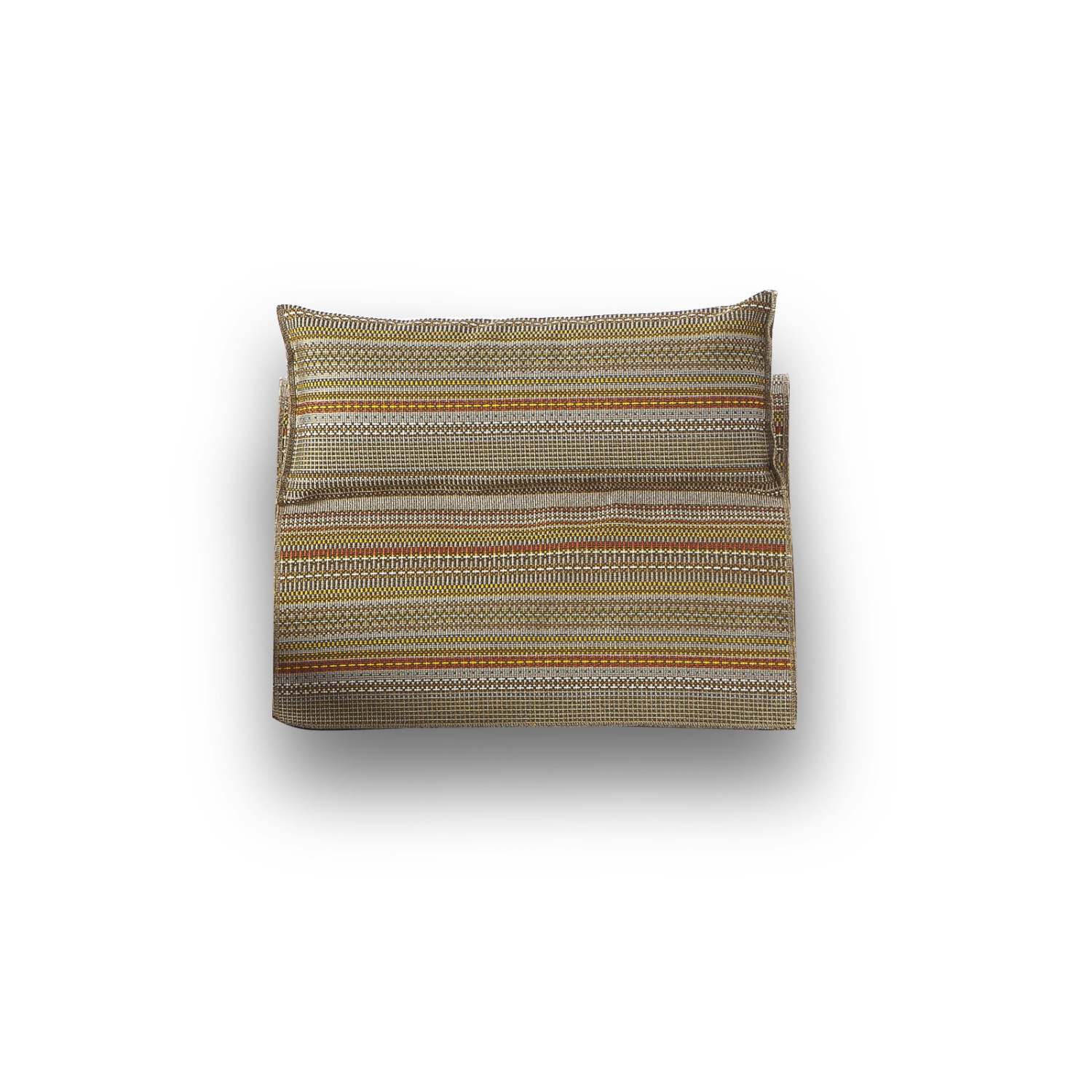 Estola is an ingenious cushion that enhances the comfort of any sofa, adding a touch of colour. Its fabric flaps sit either side of the sofas back cushion holding a padded headrest in place.This, combined with the special stitching and peculiar design, meant that a distinctive fabric with just the right weight had to be found. Its fabric flaps sit either side of the sofas back cushion holding a padded headrest in place.