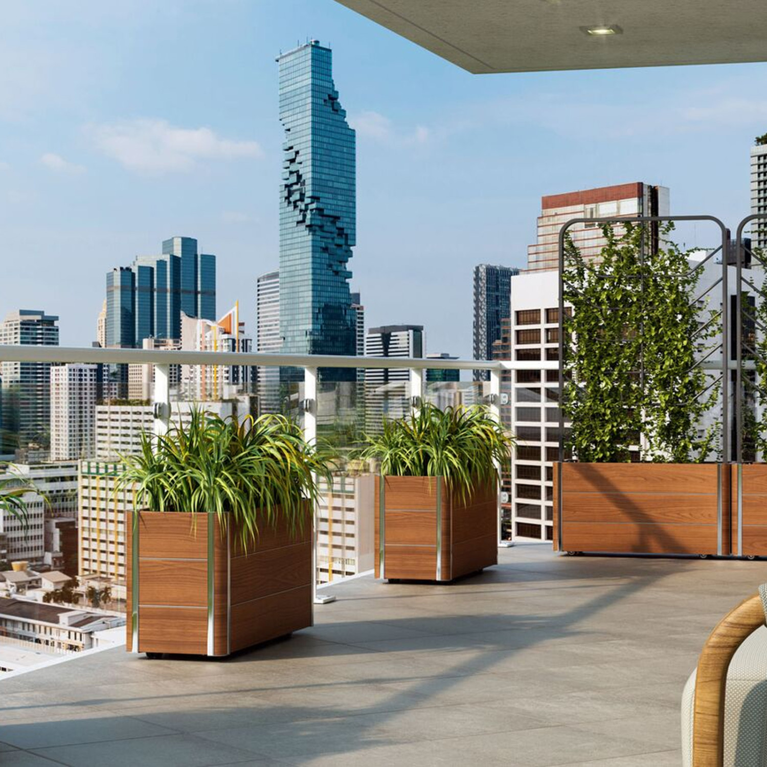 Reminiscent of the mixed materials from sailing yachts and today’s luxurious furniture designs, the Highland Planter is a refined version of timelessness, featuring thin ridges that provide an elevated accent to the wider channels.